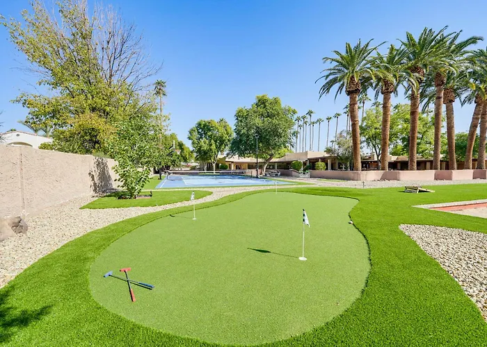 The 5-bedroom Resort Style Estate, 2 Houses, Putt-Putt Course, B-Ball Court, Heated Pool Scottsdale villa is located 4.5 km from Lost Dog Wash Trailhead and provides pool for active guests. Offering a hot tub, the property is about 15 minutes' drive from Dolphinaris Arizona Aquatic Center.